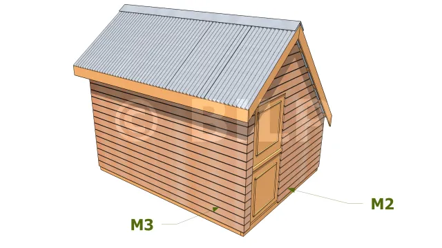 Id. Désignations Section Longueur Qté M2a Lisse basse 6x4 cm 280 cm 1 M2b Montant 6x4 cm 204 cm 5 M2c Montant 6x4 cm 164 cm 1 M2d Montant 6x4 cm 126 cm 1 M2e Montant 6x4 cm 92 cm 1 M2f Montant 6x4 cm 22 cm 1 M2g Montant 6x4 cm 47 cm 1 M2h Montant 6x4 cm 53 cm 2 M2i Montant 6x4 cm 12 cm 2 M2j Support panne (horizontale) 6x4 cm 35 cm 1 M2k Support panne (horizontale) 6x4 cm 36 cm 1 M2l Support panne (horizontale) 6x4 cm 33 cm 1 M2m Lisse haute 6x4 cm 178 cm 1 M2n Lisse haute 6x4 cm 172 cm 1 M2o Lisse haute (oblique) 6x4 cm 145 cm 1 Bardage - - 4.79 m²
