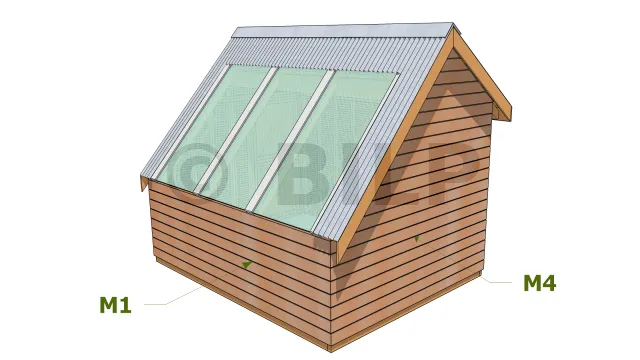 Id. Désignations Section Longueur Qté M4a Lisse basse 6x4 cm 280 cm 1 M4b Montant 6x4 cm 204 cm 8 M4c Montant 6x4 cm 164 cm 1 M4d Montant 6x4 cm 126 cm 1 M4e Montant 6x4 cm 92 cm 1 M4f Montant 6x4 cm 22 cm 1 M4g Montant 6x4 cm 47 cm 1 M4h Montant 6x4 cm 53 cm 2 M4i Montant 6x4 cm 12 cm 2 M4j Contreventement 6x4 cm 56 cm 3 M4k Lisse haute 6x4 cm 178 cm 1 M4l Lisse haute 6x4 cm 175 cm 1 M4m Lisse haute (oblique) 6x4 cm 145 cm 1 M4n Support panne(1) (horizontale) 6x4 cm 35 cm 1 M4o Support panne(1) (horizontale) 6x4 cm 36 cm 1 M4a Support panne(1) (horizontale) 6x4 cm 33 cm 1 - Bardage - - 6.58 m²