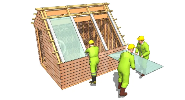 Les profilés en H doivent être de même longueur que la plaque en polycarbonate. Poser directement les profilés intermédiaires sur les chevrons. Les poutres en rive droite et gauche sont spécialement conçu pour s’adapter à ce type de toiture. La fixation de ces poutres en H s’effectuent à l’aide de vis.