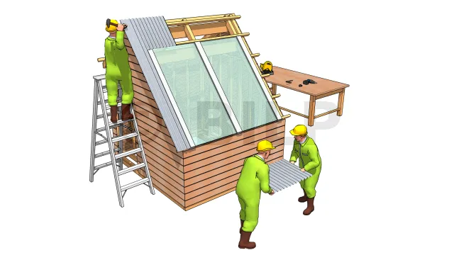 Afin de mettre la toiture au même niveau que la plaque en polycarbonate, disposez les lattes pour faire office de support pour les plaques en polyester. La longueur de ces lattes varieront selon la position ou elles seront fixer.Il est conseillé de couper ces lattes au fur et à mesure pour ne pas vous tromper. Fixer les avec des vis.