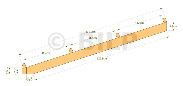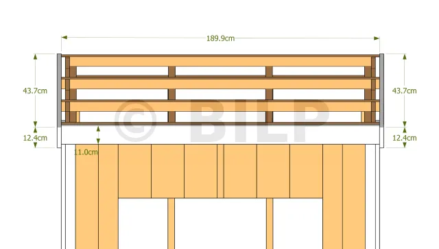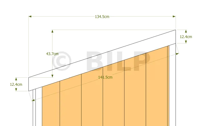 Nomenclature du bardage Id. Désignation Section Longueur Qté PB1 Planche de bardage 7.5x2.7 cm 287.6 cm 2 PB2 Planche de bardage 20x2.7 cm 285.2 cm 2 PB3 Planche de bardage 20x2.7 cm 278.8 cm 2 PB4 Planche de bardage 20x2.7 cm 272.4 cm 2 PB5 Planche de bardage 20x2.7 cm 266 cm 2 PB6 Planche de bardage 20x2.7 cm 259 cm 2 PB7 Planche de bardage 20x2.7 cm 253.2 cm 2 PB8 Planche de bardage 20x2.7 cm 236.7 cm 2 PB9 Planche de bardage 20x2.7 cm 236.7 cm 2 PB10 Planche de bardage 20x2.7 cm 35.2 cm 6 PB11 Planche de bardage 3.9x2.7 cm 35.2 cm 1 PB12 Planche de bardage 20x2.7 cm 16.5 cm 6 PB13 Planche de bardage 3.9x2.7 cm 16.5 cm 1 B1 Baguette 6x2.7 cm 287.6 cm 2 B2 Baguette 6x2.7 cm 248 cm 2 B3 Baguette 6x2.7 cm 236.7 cm 2