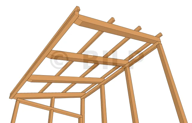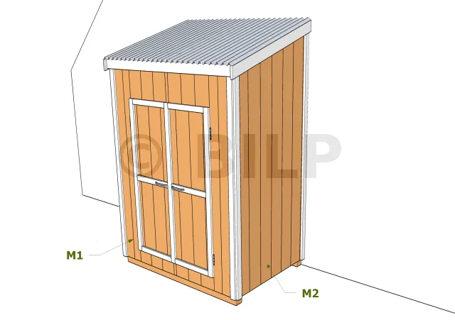 Composition globale de la structure Nomenclature du mur M1 Nomenclature du mur M2 Nomenclature du mur M3 Nomenclature du mur M4 Nomenclature de la toiture: chevrons Nomenclature de la toiture: planches de rive Nomenclature du bardage Nomenclature de la couverture en plaque polyester Nomenclature de la porte Und viele hochauflösende Illustrationen :