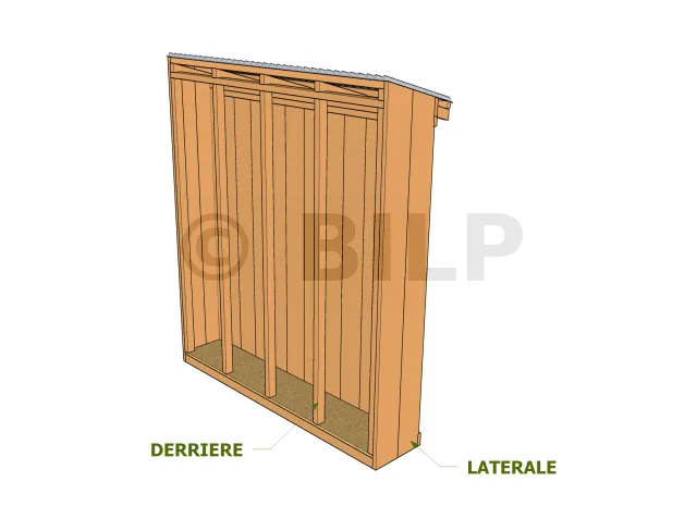 Composition globale de la structure Nomenclature du mur de FACE Nomenclature des murs LATERAUX Nomenclature du mur DERRIÈRE Nomenclature de la toiture: chevrons et liteaux Nomenclature de la toiture: closoirs Nomenclature du bardage Nomenclature de la couverture en plaque polyester Nomenclature de la porte Und viele hochauflösende Illustrationen :