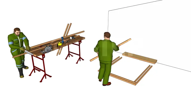 Le montage des murs se fait dans ce cas de façon élémentaire. Découper d’abord les ossatures aux extrémités des faces principales et de derrière à la bonne longueur.
