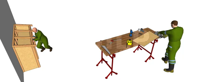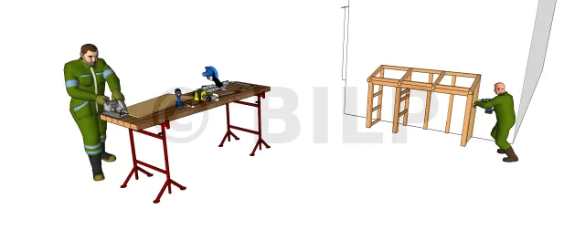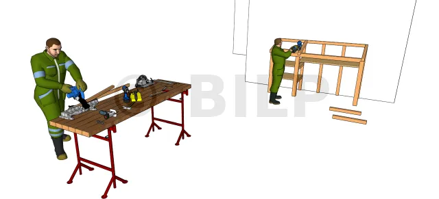 • Découper, repérer les positions et fixer les éléments des chevrons et closoirs.