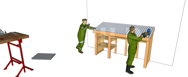 Après le bardage, passer à la pose des plateaux pour ne pas être pénalisé par l’espace à la fin. Découper à la bonne dimension les plaques d’OSB et fixer-les sur les ossatures latérales avec des vis inox adaptés.