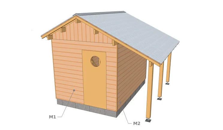 Ausgehend von den allgemeinen Maßen listet diese Seite die Elemente auf, aus denen Ihre Hütte besteht, sowie deren Maße.