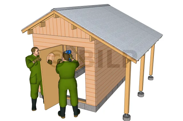 Das Gartenhaus ist fast fertig, Sie müssen nur noch die verschiedenen Zubehörteile wie die Tür und die Verkleidungsplatten anbringen.