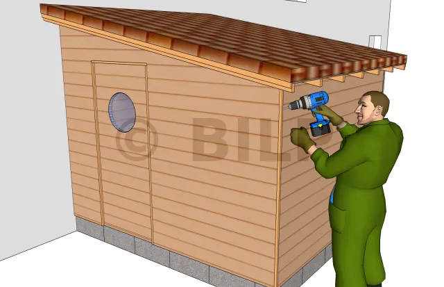 Das Gartenhaus ist fast fertig, Sie müssen nur noch die verschiedenen Zubehörteile wie die Tür, die Türleisten und die Kanteln für die Fassadenverkleidung anbringen.