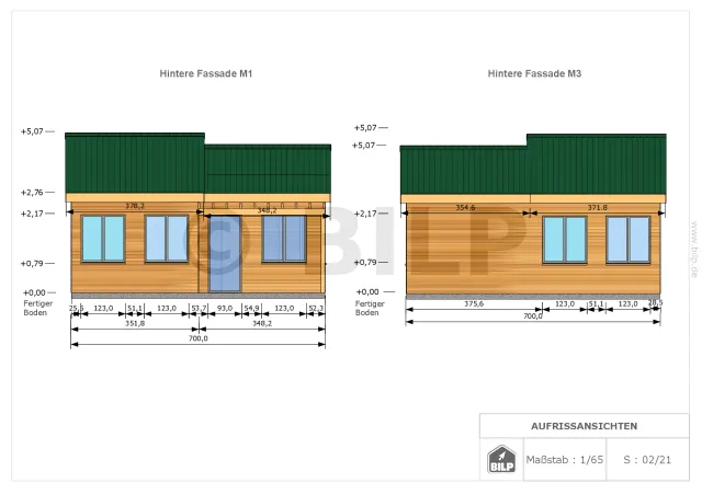 Zahlreiche Ansichten detaillieren die verschiedenen konstruktiven Elemente.