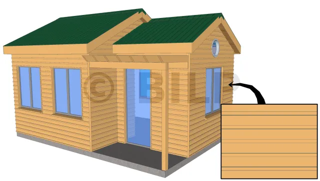 Das Gartenhaus besteht aus einem Pultdach mit zwei Ebenen und einer Veranda, die mit einer Pergola versehen ist. Es handelt sich um ein Gebäude mit zwei geräumigen Räumen, die als kleine Wohnung, Büro, Werkstatt oder Lagerraum genutzt werden können.