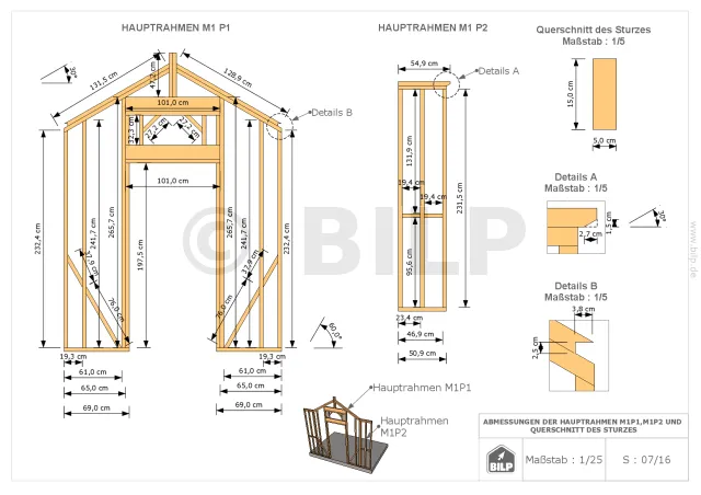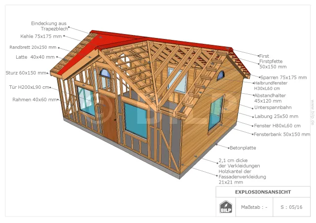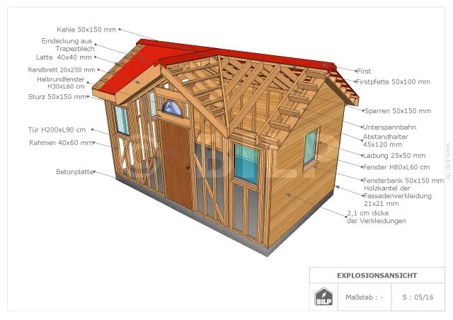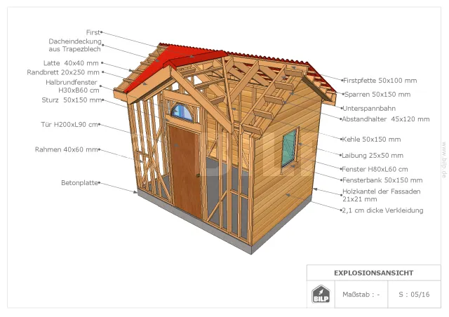 Wenn Sie ein Gartenhaus bauen möchten, das sowohl praktisch als auch ästhetisch ansprechend ist, empfehlen wir Ihnen dieses Modell. Um den Bau zu erleichtern, erhalten Sie eine Bauanleitung mit detaillierten Plänen und den erforderlichen Schritten. So können Sie das Gerüst für das Dach problemlos aufstellen. Je nachdem, für welche Variante Sie sich entscheiden, kann das Modell ANGELA als Büro, Abstell- oder Lagerraum, als Ort der Entspannung, als eigenständige Wohnung usw. dienen.