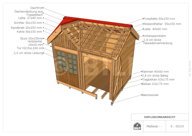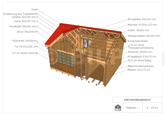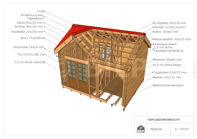 Dieses Modell ist zwar etwas kompliziert, was den Dachstuhl betrifft, aber dank der Bauanleitung, die die vollständigen Pläne enthält, wird Ihnen das keine Sorgen bereiten. Zusätzlich zu den Plänen haben Sie eine Stückliste, die Ihnen beim Einkauf der Materialien hilft.