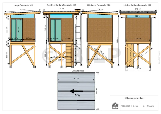 Zahlreiche Ansichten detaillieren die verschiedenen konstruktiven Elemente.